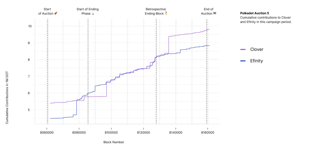 As we can see above, the decisive block fell into an area where Clover was leading and thereby the result was in line with the overall odds. Thus, Clover became the fifth auction-winning parachain on Polkadot.