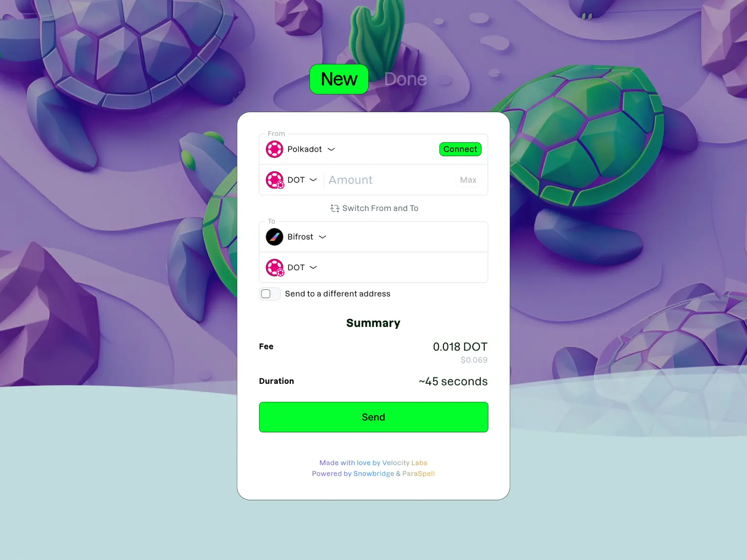 Unlock Polkadot’s thriving ecosystem of specialized rollups (i.e., parachains), DeFi protocols, and dapps by seamlessly moving your assets from Ethereum, Bitcoin, and other major blockchains. Polkadot bridges let you transfer value securely and efficiently, opening up new opportunities across the network.