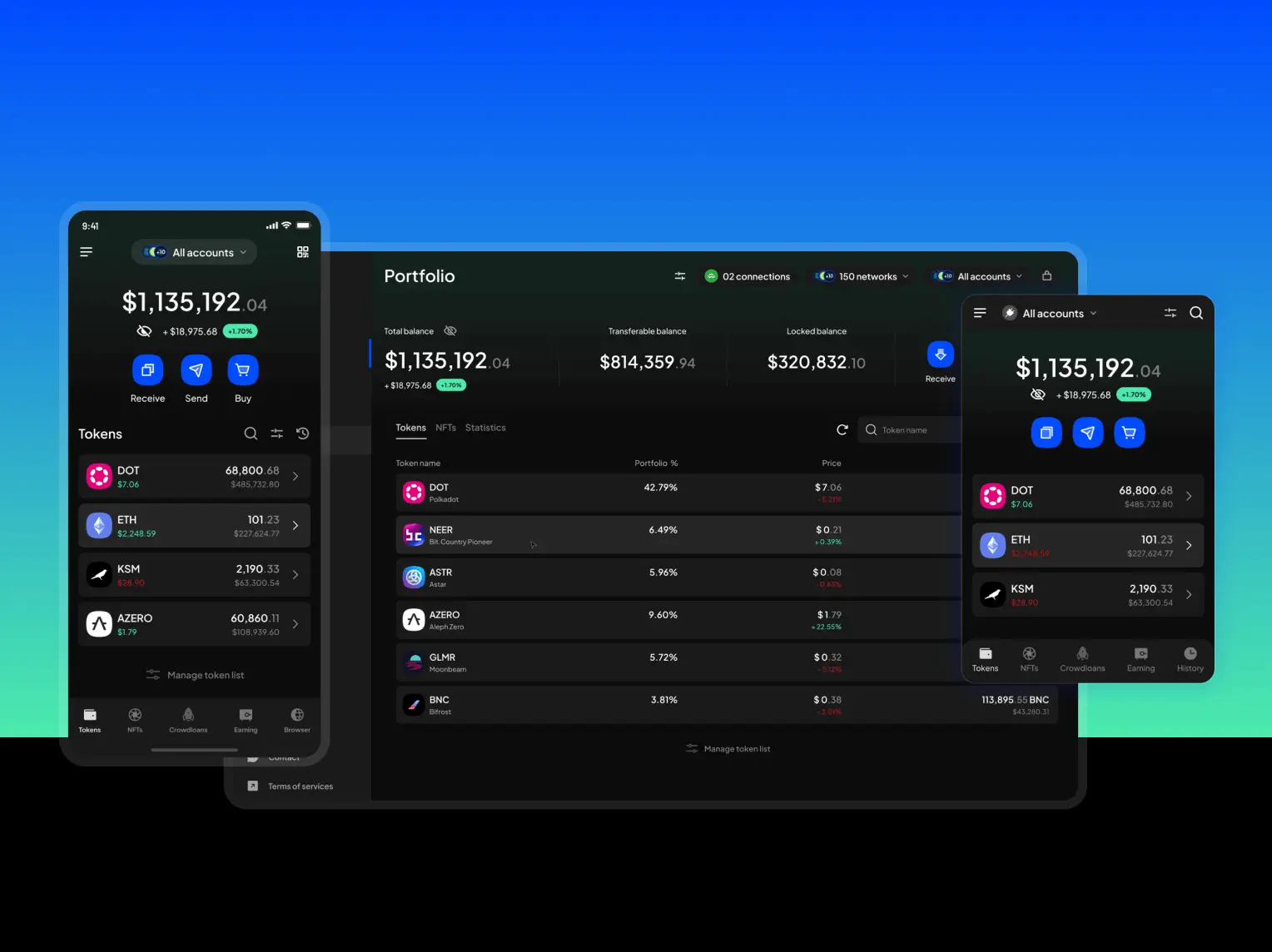 Get a secure wallet for all things DOT—hold, stake, contribute to crowdloans, participate in governance, and dive into dapps across the Polkadot ecosystem.