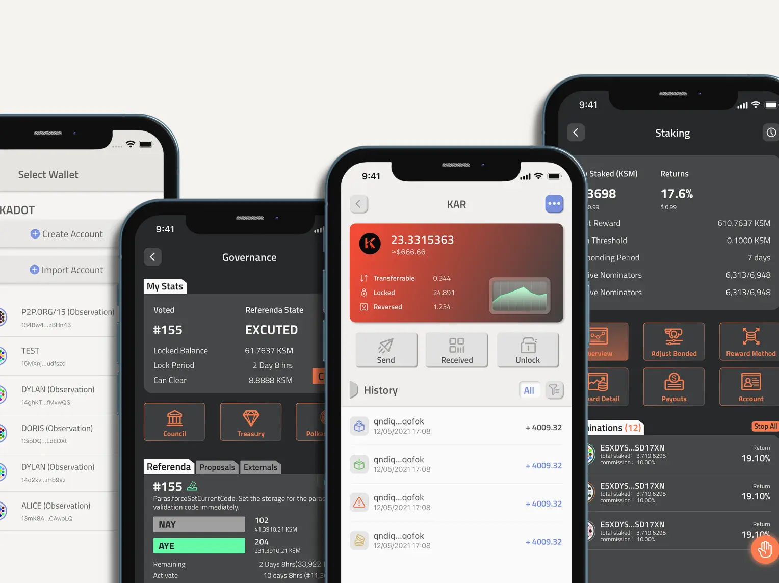 Choose among browser extensions and mobile apps to easily manage DOT, stake, participate in governance, contribute to crowdloans, and more.